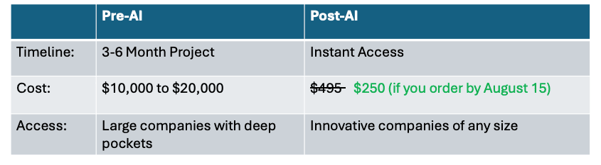 Good News! The Cost of Competitive Intelligence Just Dropped 10X - 20X